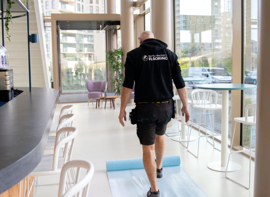 Rol het afdekvlies uit over je vloer en leg de randen vast. Geen gereedschap nodig. In minuten klaar, ook op grote oppervlakten.
